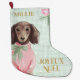 Calcetín Navideño Grande Pink Dachshund & Green Gingham Joyeux Noël