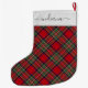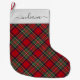Calcetín Navideño Grande Plaid Tartan Stewart Rojo Rústico Verde