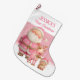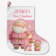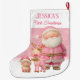 Calcetín Navideño Grande Primera Navidad rosa de doble cara personalizada