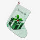 Añada un toque caprichoso a su manto esta temporada navideña con un regalo de Navidades verdes personalizado. El diseño de Stocking design presenta un vibrante regalo de Navidades verdes adornado con bayas huecas y copos de nieve cayendo contra un elegante desplazamiento y hojas fondo. También hay artículos de regalo y de vacaciones disponibles con este diseño.