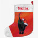 Calcetín Navideño Grande Un gato negro en Santa Hat en rojo