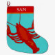 Langosta roja Unisex, Navidades costeros abasteciéndose con plantilla de nombres. Colores rojo y azul verde azulado, con un gran crustáceo y tiras de color en la parte superior donde el nombre se añade con letras blancas impresas. Podría ser para un niño o chica, niño o adulto.