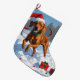 Calcetín Navideño Grande Vizsla corre en Nieve con Gorra Navidad