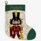 Navidades de Nutcracker personalizados Socking Stocking Trae un capricho a su decoración de vacaciones con esta reserva personalizada de Navidades Nutcracker. Con un clásico soldado de la tribu Nutcracker parado alto en un rico fondo beige adornado con hojas y bayas huecas, este caldo captura el espíritu festivo de la temporada. La vívida pancarta verde de la parte superior es un lugar perfecto para la personalización, lo que lo convierte en un apreciado añadido a cualquier mantel con chimenea. Ideal para añadir un toque tradicional pero lúdico a las celebraciones de sus Navidades. Perfecto para regalar unas vacaciones o para crear una experiencia de vacaciones personalizada.