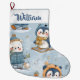 "Bring playful holiday fun to your home with this Whimsical Snowy Pattern Christmas Stocking, featuring adorable penguins on skis and cheerful bears enjoying the winter wonderland. The lively snowy pattern adds a festive, joyful touch to your holiday décor, perfect for creating a warm and whimsical atmosphere. Add a personalized name to make it a unique keepsake for kids, family members, or anyone who loves fun, festive designs. Its generous size makes it ideal for stuffing with gifts, treats, and holiday surprises."