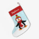 Navidad adorable que almacena con el pequeño pingüino lindo, él está llevando un gorra verde rojo y una bufanda roja. Usted puede modificar este calcetín para requisitos particulares con su mensaje personal. Aclare encima de los días de fiesta con esta media adorable. Algunos gráficos: por Prettygrafikdesign