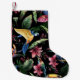 Calcetín Navideño Pequeño Aves tropicales, flores: patrón de acuarela.