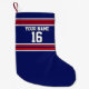 Calcetín Navideño Pequeño Azul marino con franjas blancas rojas Jersey