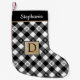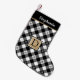 Calcetín Navideño Pequeño B&W Búfalo Check Snowflake Monograma Nombre