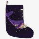 Calcetín Navideño Pequeño Ballena espacial: retrato ilustrado colorido.
