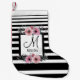 Calcetín Navideño Pequeño Bandas negras y blancas monograma floral rosa