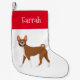 Calcetín Navideño Pequeño Basenji blanco rojo personalizado