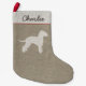 Todos quieren ser incluidos en las festividades de temporada y nuestros amigos de cuatro patas no son la excepción. Trate a su miembro de la familia canina con un Navidad personalizado. Silhouette Bedlington Terrier sobre tela de imitación de lino con texto personalizado. Visite el mundo doodle de Jenn para ver más medias de Navidades de raza de perro y los regalos de los amantes de Bedlington.