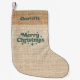 Calcetín Navideño Pequeño Beige burlap nombre retro Feliz Navidad