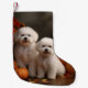 Calcetín Navideño Pequeño Bichon Frise Puppy Calabaza deslumbrante de otoño