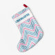 Calcetín Navideño Pequeño Big Zag Chevron in Pink + Aqua Personalized