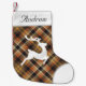 Calcetín Navideño Pequeño Bonito diseño elegante monogramado marrón tartán