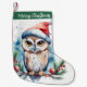 Navidades Estacionando con una linda lechuza acuarela con un gorra Navidad. ¡Personalizable.