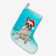 Calcetín Navideño Pequeño Bulldog francés en Santa Hat Navidades de nieve