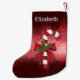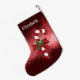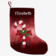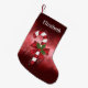 Calcetín Navideño Pequeño Caña De Velas Rojas En Un Fondo De Bokek Rojo