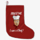 Cabeza del chef con gorra, pañuelo rojo y texto personalizado.
