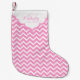 Calcetín Navideño Pequeño Chevron Monogramado Rosa Y Blanco Zigzag