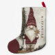 Whimsical, vintage charm meets holiday tradition. This festive stocking features an adorable gnome in a cozy dark red knit hat, holding a golden star beside a dark green evergreen tree. With its rich red accents and playful Nordic vibe, it’s perfect for kids, grandkids, or anyone who loves a touch of magic in their Christmas décor. The sample name printed along the side can be easily customized—just click “Personalize this Template” to make it truly your own. It's a delightful way to make Christmas morning feel extra special.