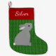 ¡Todos los mascotas merecen un caldo para que Santa lo llene! Este lindo y pequeño diseño de conejito gris que se puede personalizar con el nombre de tu mascota se verá genial colgando en la víspera de los Navidades. Diseño original de Night Owl's Menagerie, 2016.