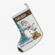 Calcetín Navideño Pequeño Cute Happy Purple Snowman con presentes