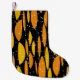 Calcetín Navideño Pequeño Estilo atómico, patrón geométrico naranja negro.