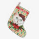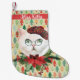 Calcetín Navideño Pequeño Fancy White Cat and Poinsettia Personalizado