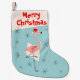 Calcetín Navideño Pequeño Flamingo Santa Blue Merry Christmas