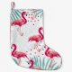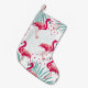 Calcetín Navideño Pequeño Flamingo y hojas tropicales, patrón de verano.