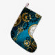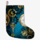 Calcetín Navideño Pequeño Fondo turquesa Steampunk con engranajes