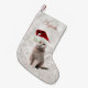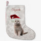 Calcetín Navideño Pequeño Gato con Sombrero Santa, Bokeh Purpurinoso