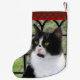 Calcetín Navideño Pequeño Gato de Tuxedo en la ventana Pintura de arte anima