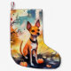 Calcetín Navideño Pequeño Halloween Basenji con calabazas temerosas