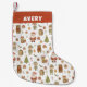 Customizable Stocking - Cute Santa & Woodland Animal Christmas Pattern --- This cute design is hand-drawn then digitally illustrated, creating a wonderfully authentic yet polished look. ...... Get ready for the holidays with this charming, cozy pattern! It blends festive icons - like a jolly Santa and happy elves - with cute, scarf-wearing woodland critters. The gentle style and earthy Christmas colors create a sweet, inviting look perfect for the season.
