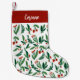 Hermosas hojas color agua verde con bayas rojas y azulejos adornan este lindo Navidad personalizado. Personalice la fiesta de vacaciones rojas y verdes con su nombre por encima del magnífico patrón botánico.