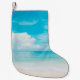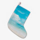 Calcetín Navideño Pequeño Hermosa playa tropical con cielo azul y c blanco