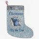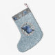 Calcetín Navideño Pequeño Jewel azul marino Aquamarine Silver Faux Glitter