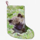 Calcetín Navideño Pequeño Keeshond Puppy en el jardín pintando arte original