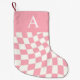Navidades retro psicodélicos modernos y revisores rosa y blanco pastel a cuadros, con monograma personalizado