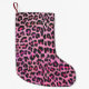 Calcetín Navideño Pequeño Leopardo de impresión negro y rosa caliente