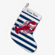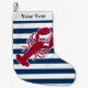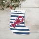 Calcetín Navideño Pequeño Lobster Rojo Náutico Monograma Banda Blanca Azul