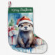 Navidades Estacionando con una linda nutria acuarela con un gorra Navidad. ¡Personalizable.