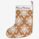 Cuelgue estas preciosas medias de Navidades sobre su chimenea esta temporada. Este diseño presenta un fondo marrón con grandes copos de nieve blancos. ¡Personalice hoy! Pintura de copo de nieve creada por: AMBilustrations http://www.etsy.com/shop/AMBillustrations/