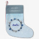 Calcetín Navideño Pequeño Marco elegante plateado sobre azul claro