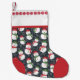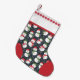 Fun bright Xmas red and green Christmas pattern with mellow smiling white snowmen in red and green hats and scarfs set on a dark evening blue background with line drawn flowers and holly - topped by a customizable name bordered by little red geometric flowers. There is also a version of this stocking available with a pre-filled customizable name in the white area, and a version with snowmen on a Xmas green background. Matches the Mellow Snowmen Xmas red collection.