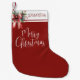 Calcetín Navideño Pequeño Merry Christmas Name Red Bow Holly
